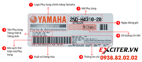 Nhãn mác và tem chống giả: Phụ tùng chính hãng thường có nhãn mác rõ ràng với logo Yamaha. Tem chống hàng giả thường có mã QR hoặc hologram để xác thực.