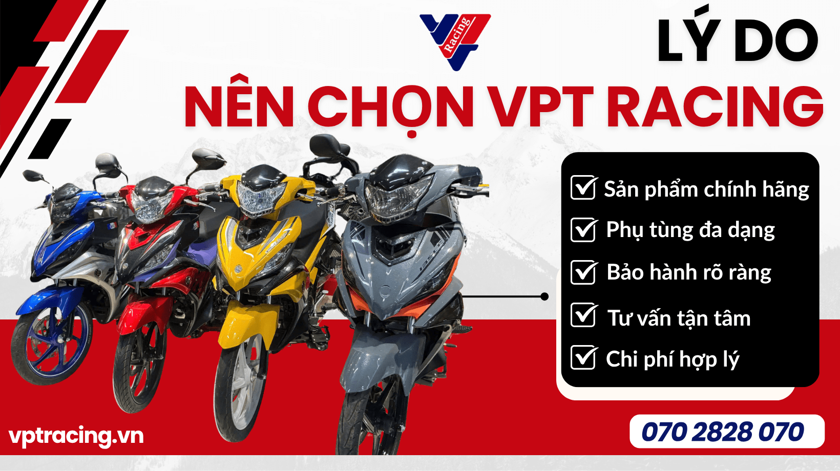 Bạn đang tìm kiếm phụ tùng xe máy chính hãng, chất lượng cao, có giá tốt và bảo hành rõ ràng? Đừng bỏ qua VPT racing – điểm đến tin cậy cho anh em biker trên toàn quốc!